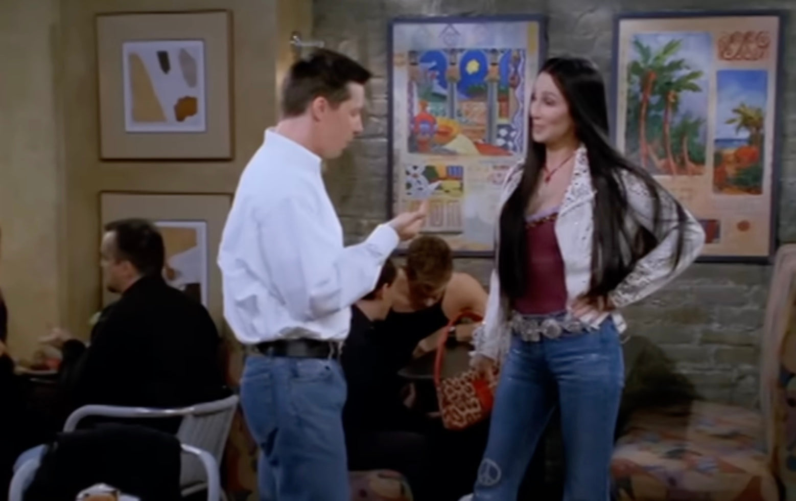 Cher pictured in front of one of the artist’s paintings on the set ofWill & Grace.